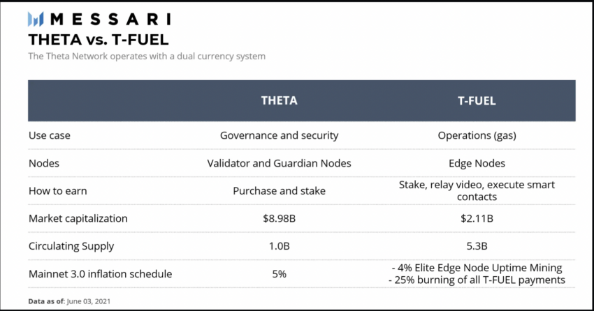 - Es gibt zwei native Token: TFUEL und THETA. Letzterer hilft, das Netzwerk zu sichern und unterstützt das Staking. TFUEL dagegen agiert als Kraftstoff für den Betrieb des Netzwerks.