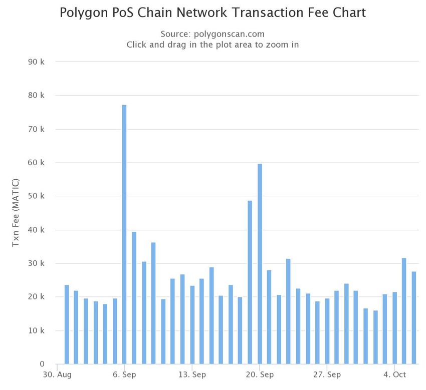 Im Oktober 2021 liegen die Ethereum-Gebühren bei rund 49 Millionen US-Dollar pro Tag, bei einer Rate von rund 1.375.249 Transaktionen pro Tag und einer durchschnittlichen Transaktionsgebühr von 0,0099 ETH (36,01 US-Dollar, 1 ETH = 3.622,54 US-Dollar). Die täglichen Transaktionsgebühren im Polygon (MATIC)-Netzwerk betragen 39.103 $ (27.733 MATIC, 1 MATIC = 1,41 $) pro Tag.