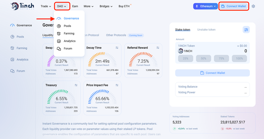 Die Token werden in der 1inch DAO (dezentrale autonome Organisation) verwendet, um über die zukünftigen Entwicklungen der Plattform abzustimmen.