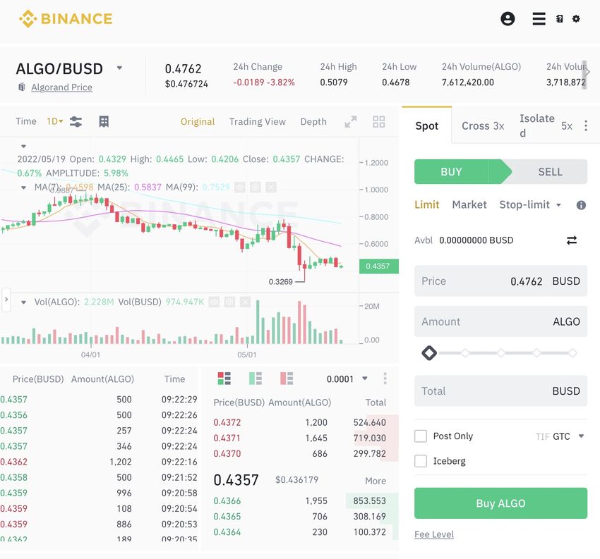 Algorand ist bei allen großen Kryptobörsen erhältlich und kann daher ganz einfach erworben werden. Zu den Börsen, an denen du ALGO Token kaufen kannst, gehören Binance, Coinbase, Crypto.com, Kraken und weitere. In diesem Abschnitt erfährst du außerdem, wie du ALGO über dein Binance Konto kaufen kannst.