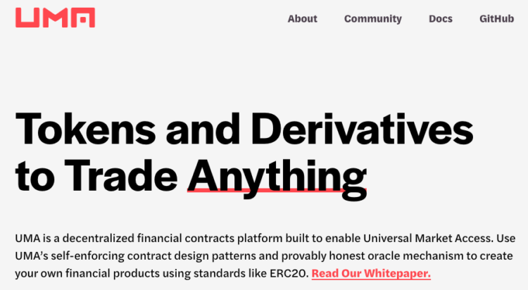- UMA ist eine dezentralisierte Vertragsplattform, die Total Return Swaps auf Ethereum ermöglicht ein Engagement in mehrere Vermögenswerte anbietet.