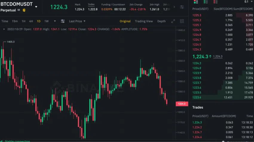 Die BTC-Dominanz ist nicht nur ein Index. Stattdessen kannst du auf Binance die BTCDOM/USDT-Futures handeln. Daher ist es möglich, die BTC-Dominanz als kurzfristiges und gehebeltes Handelsinstrument zu nutzen. Natürlich vorausgesetzt, du weißt Bescheid, wie du den Bitcoin-Dominance-Chart im Verhältnis zu anderen Metriken lesen musst.