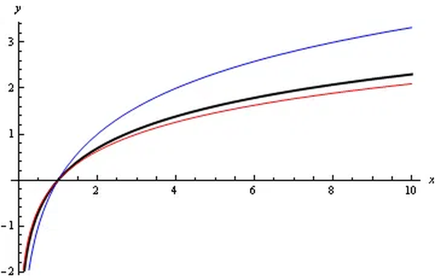 Betrachte nun die Umkehrung davon – eine logarithmische Linie, die schnell beginnt und im Laufe der Zeit immer flacher wird. Darüber hinaus entfernen sich sowohl exponentielle als auch logarithmische Linien immer weiter von der x-Achse, sodass sich die Höchst- und Tiefstwerte bei jedem Bullen-/Bärenzyklus ändern.