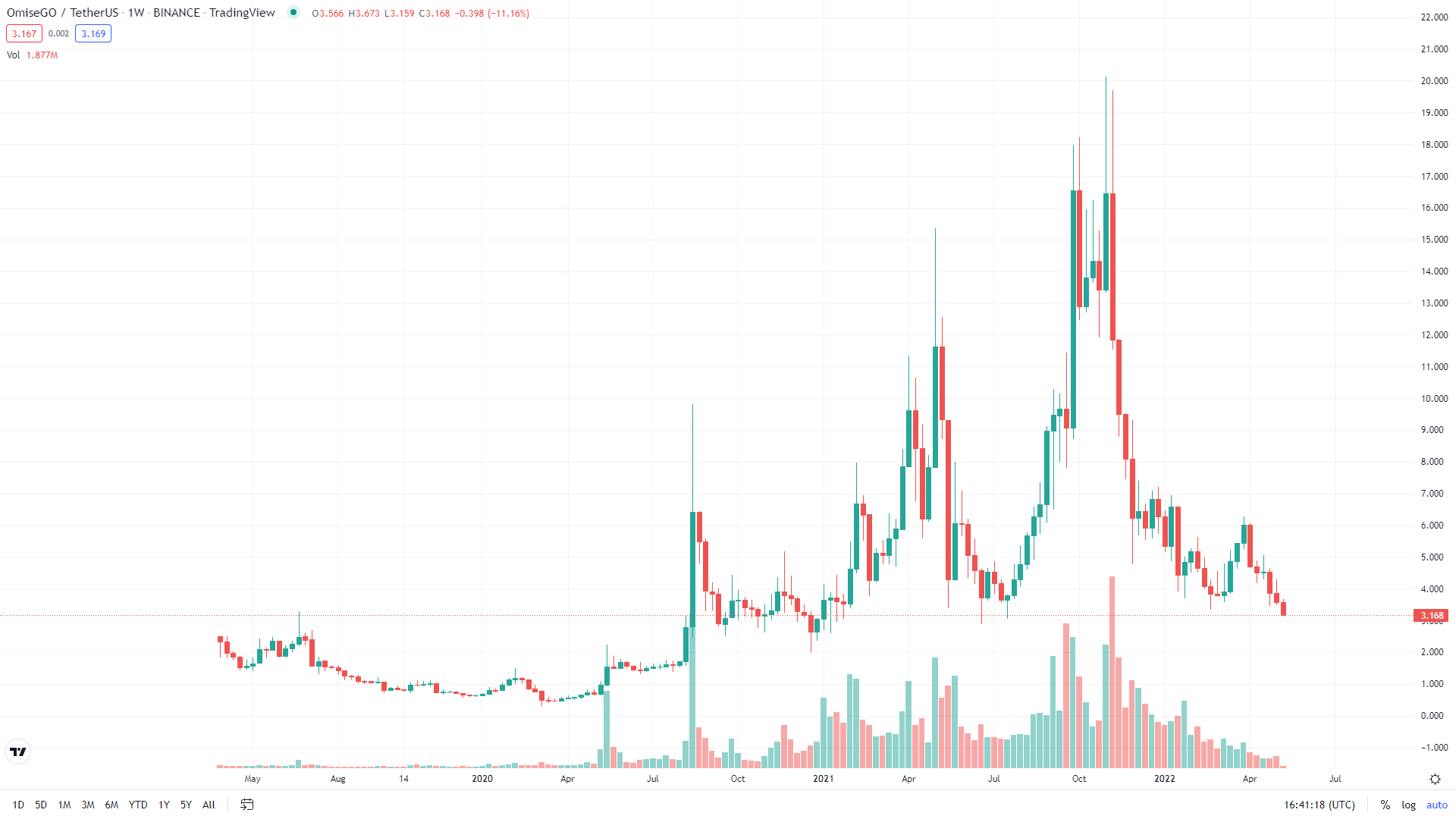 Im November 2021 erreichte der OMG Kurs das letzte Allzeithoch bei 20,12 US-Dollar. Der Kurs fiel jedoch im Anschluss innerhalb weniger Minuten um 30 %. Experten sagen voraus, dass der Durchschnittspreis in Zukunft bei etwa 11,7 US-Dollar liegen wird und möglicherweise noch auf 12 bis 13 US-Dollar steigen kann.