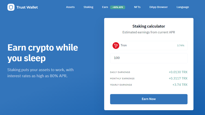 Das TRON Staking ist ziemlich einfach und es gibt mehrere Möglichkeiten, dies zu tun. Nehmen wir an, du nutzt die TrustWallet – dann kannst du dort mit wenigen Klicks deine TRON Coins staken.