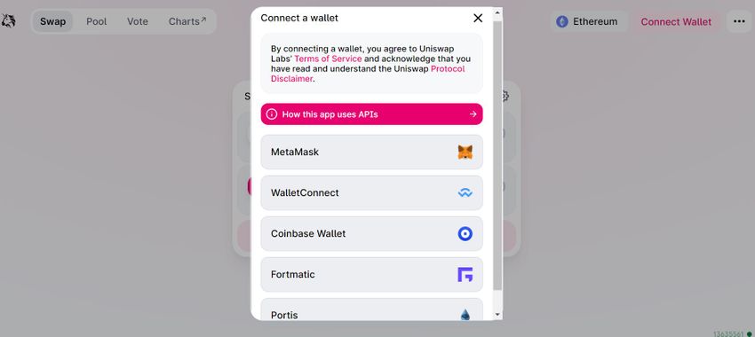 Gehe zu Uniswap und klicke auf “Connect Wallet” in der oberen rechten Ecke.