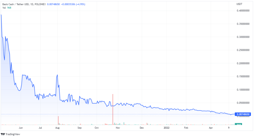 Basis Cash (BAC) konnte seine Dollar-Anbindung jedoch nicht aufrechterhalten und kann deswegen auch nicht mehr als Stablecoin angesehen werden. Heute hat der Coin einen Wert von unter 0,01 US-Dollar und die Investoren haben die Unterstützung aufgrund von fehlendem Vertrauen aufgegeben.