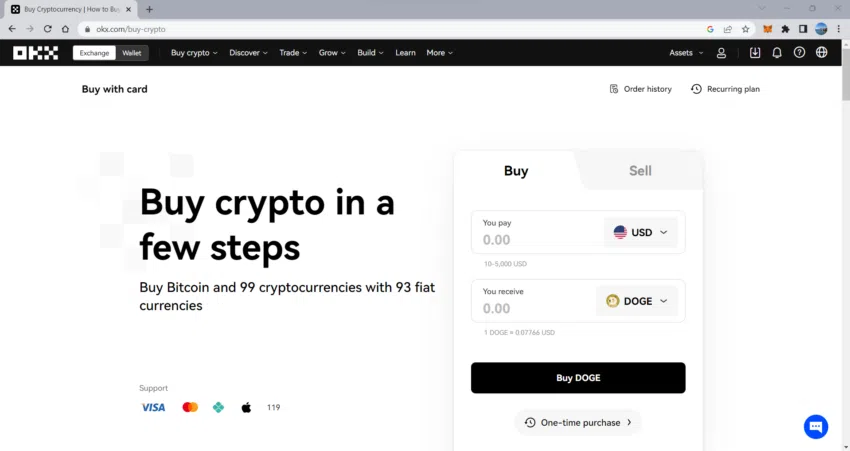 Meme-Coins sind auf den meisten großen Kryptobörsen leicht zu kaufen. Der Prozess erfordert nur wenige Schritte auf einfach zu bedienenden Plattformen wie OKX. Hier ist ein Beispiel, wie man schnell Dogecoin über OKX kaufen kann.