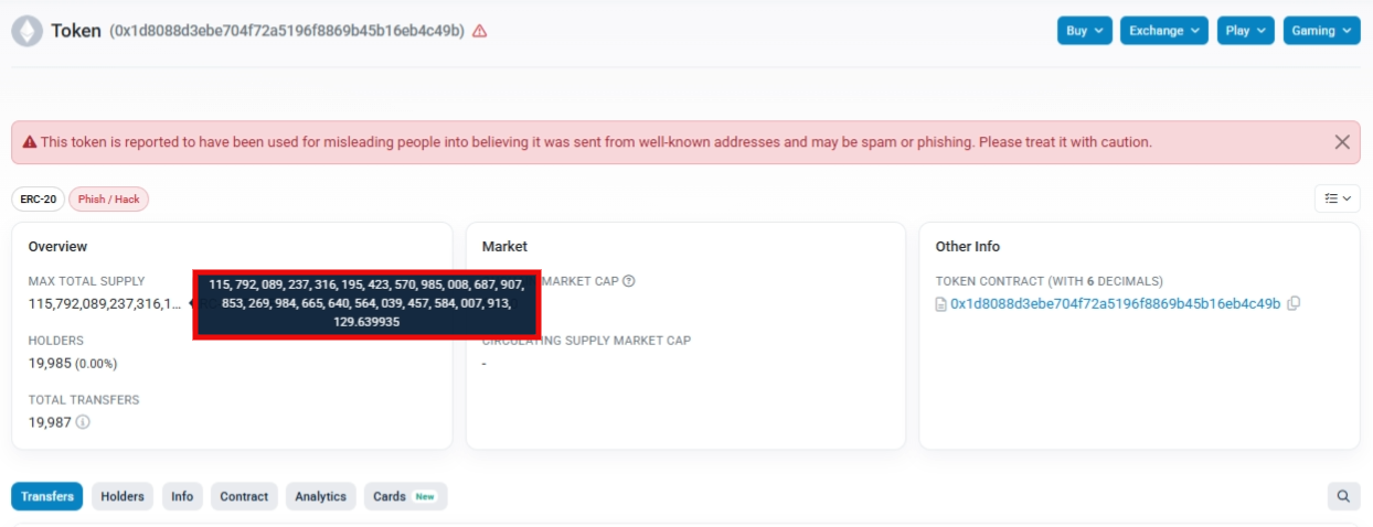 Betrüger erstellen oft gefälschte Versionen beliebter Token oder Memecoins und nutzen Phishing-Techniken, um Gelder zu stehlen. Aufgrund der offenen Natur von Blockchains sind Phishing-Betrügereien bis zu einem gewissen Grad unvermeidlich. Jeder kann einen Token erstellen, der einer offiziellen Kryptowährung ähnelt.
