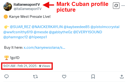 Wir verwenden den Begriff “Prominente”, um eine Person von erheblichem Bekanntheitsgrad zu definieren, aber diese Art von Betrug kann auch auf einen Influencer oder einen wichtigen Meinungsführer (KOL) zutreffen. Von Prominenten unterstützte Memecoin-Betrügereien sind eine beliebte Methode von Betrügern. Manchmal sind die Prominenten selbst an dem Betrug beteiligt.