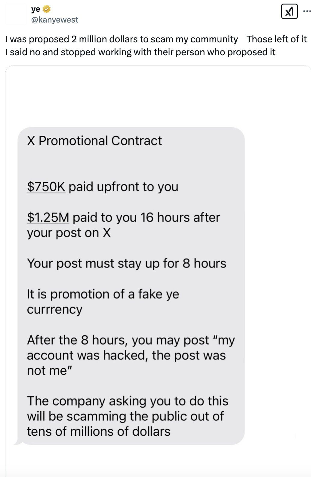 Betrüger können auch versuchen, Prominente zu bestechen, um für eine begrenzte Zeit Zugang zu ihren Social-Media-Konten zu erhalten. Bei dieser Methode behaupten Prominente oft, dass sie gehackt wurden, um sich der Verantwortung zu entziehen.