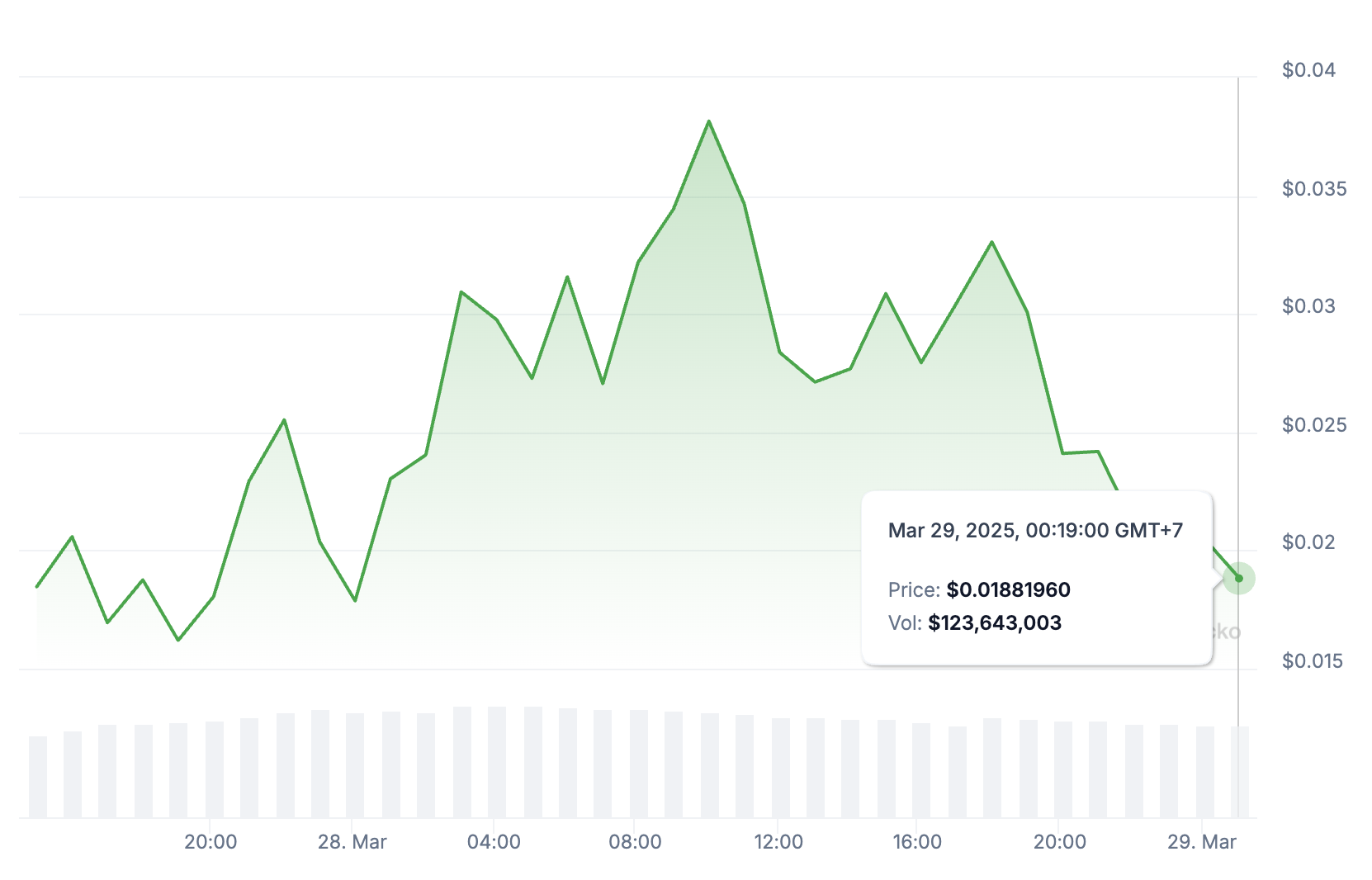 Mit Stand vom 29. März 2025 liegt der Kurs bei 0,01888 USD.