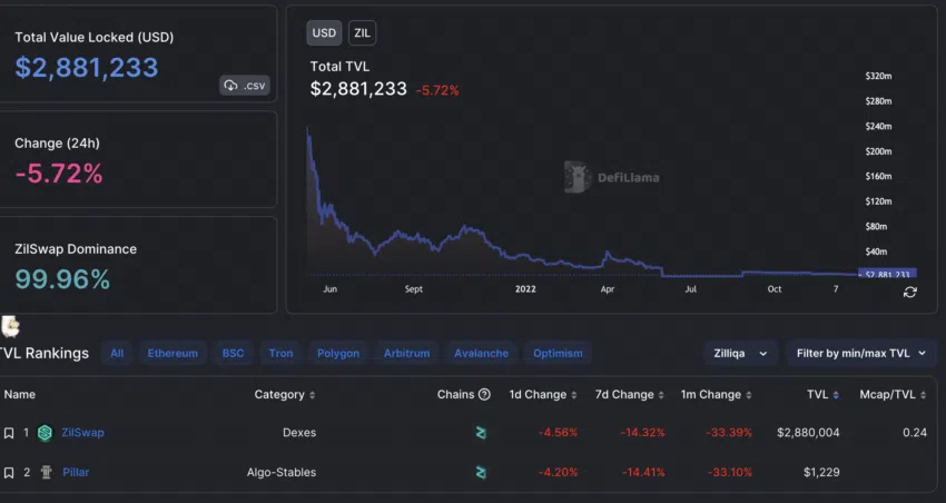 - Zilliqa liegt derzeit auf Platz 90 in Bezug auf DeFi TVL (Total Value Locked).