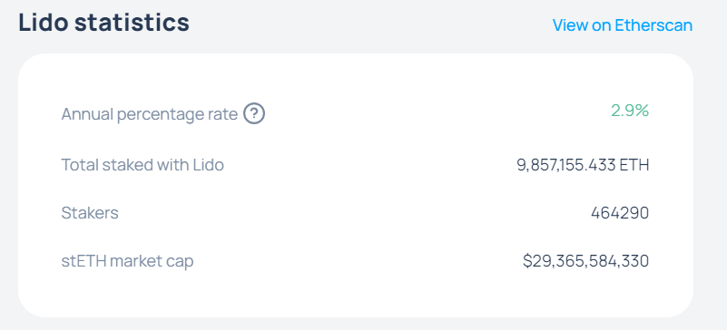 Unterdessen unterstreicht dieser neue Produktstart Lidos anhaltenden Erfolg in der Branche. Das Protokoll, das größte in der dezentralen Finanzwirtschaft, kontrolliert etwa 28,81 Prozent des Ethereum-Staking-Marktes. Daten von DeFillama zeigen, dass Investoren rund 9,9 Millionen ETH gestakt haben, die fast 29,4 Milliarden USD wert sind, bei Lido. Sein Liquid-Staking-Token, stETH, bleibt das am meisten genutzte Sicherungsmittel in DeFi.