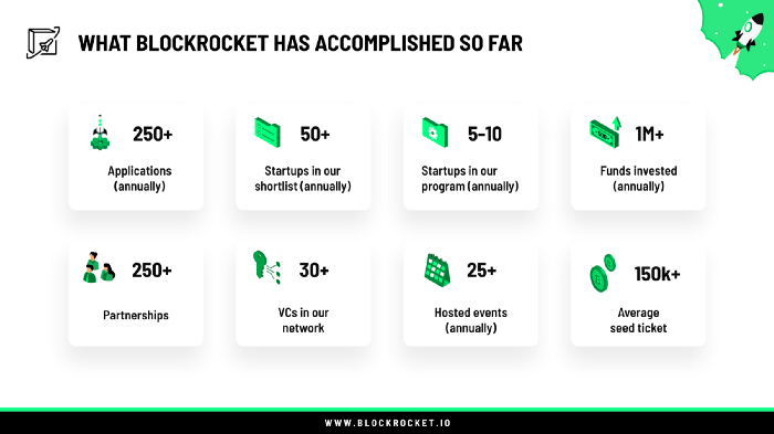 BLOCKROCKET ist ein Accelerator-Programm und Investor für Blockchain-Startups im Frühstadium, das Anfang 2019 von einer Gruppe vermögender Privatpersonen aus dem Fintech-Bereich in Deutschland ins Leben gerufen wurde. Wir bieten ein exklusives Ökosystem, um Startups, Unternehmen und Investoren dabei zu helfen, das Potenzial der Blockchain-Technologie zu nutzen.