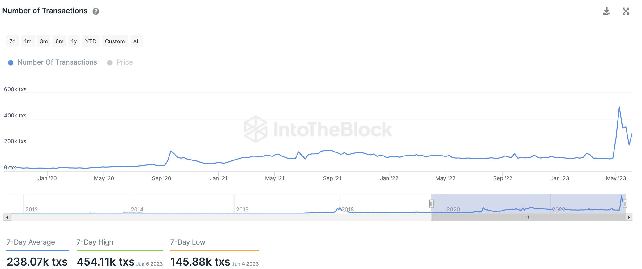 Auch die Anzahl an Transaktionen im LTC Netzwerk zeigt in den letzten Wochen einen deutlichen Anstieg. Dabei liegt der Durchschnitt der letzten sieben Tagen bei rund 238.000 Transaktionen.