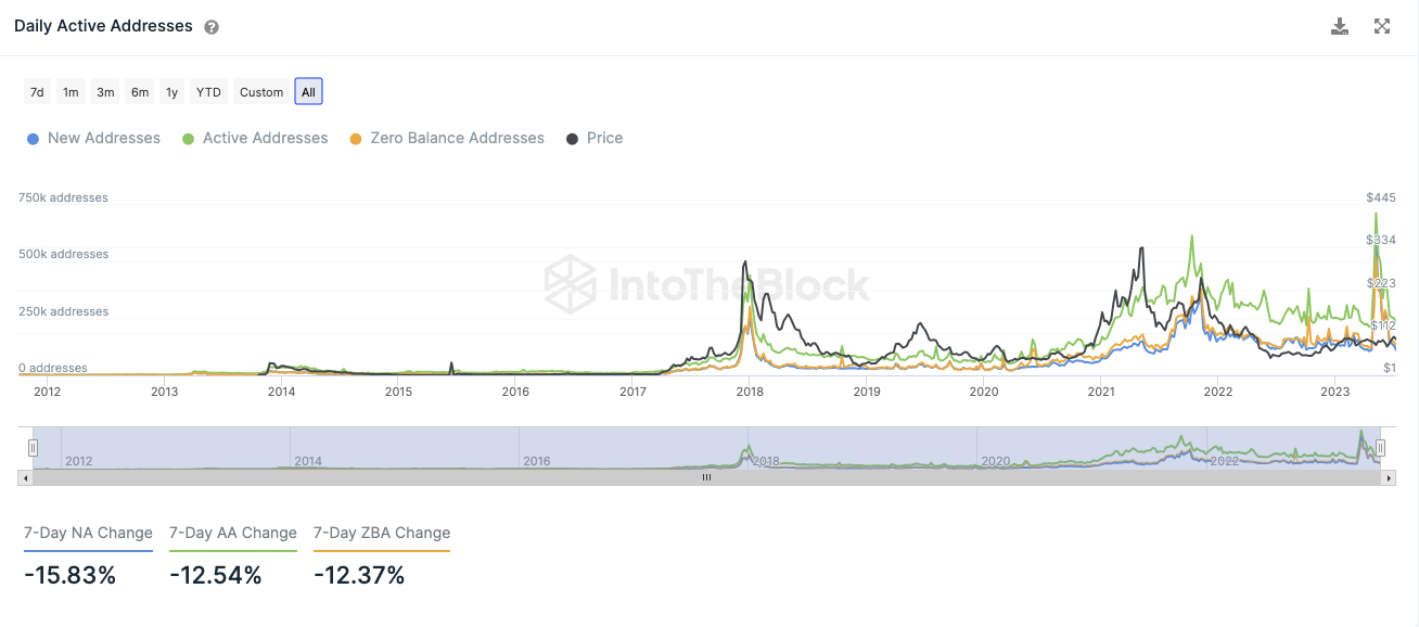 Die Anzahl an täglichen aktiven Adressen ist in den letzten sieben Tagen deutlich zurückgegangen