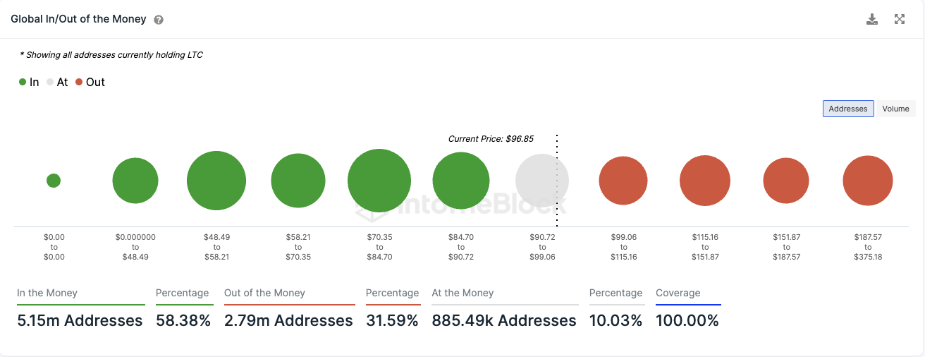 SponsoredRund 58,4 % der Adressen könnten ihre LTC Token jetzt mit Gewinn verkaufen
