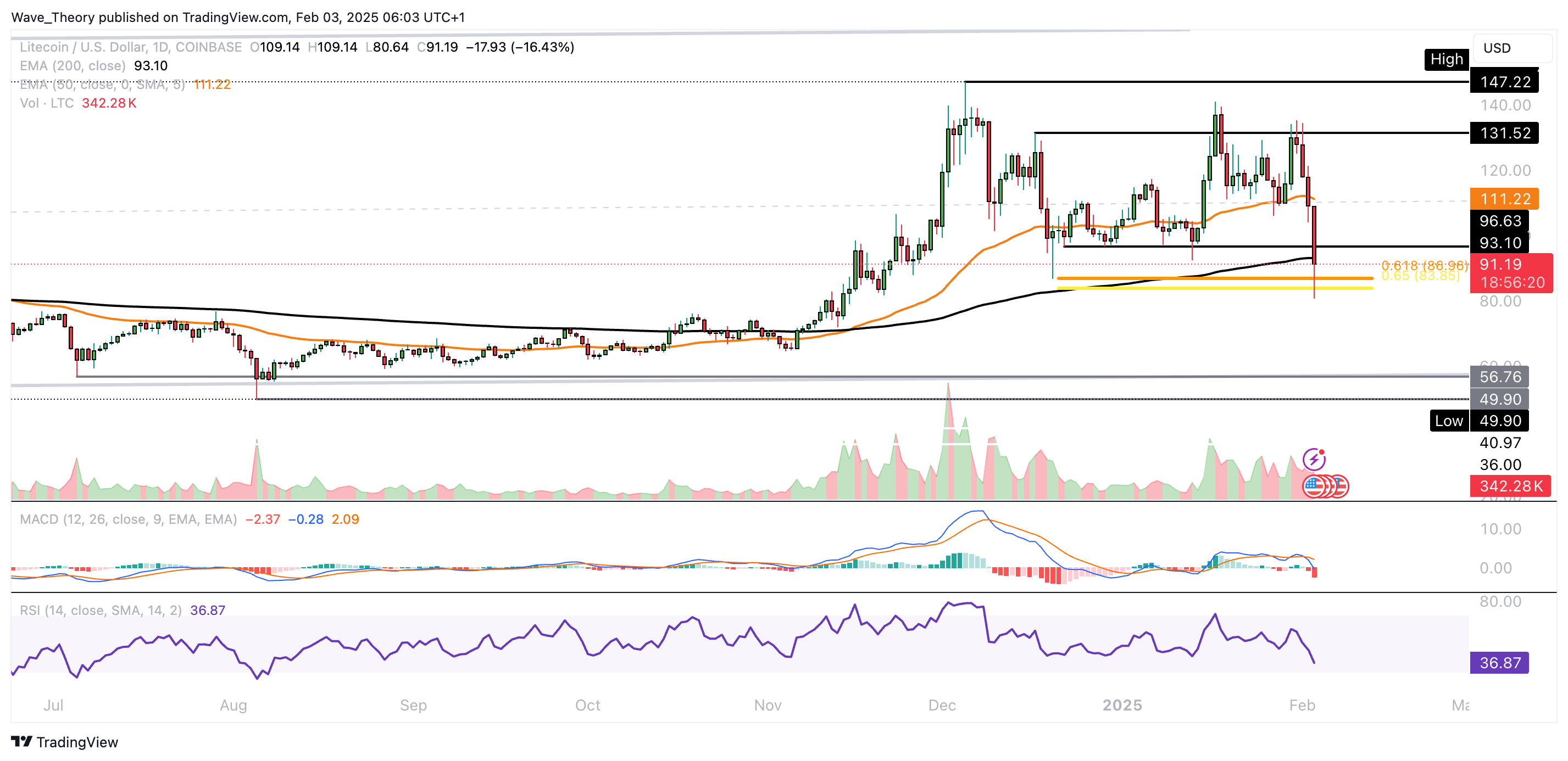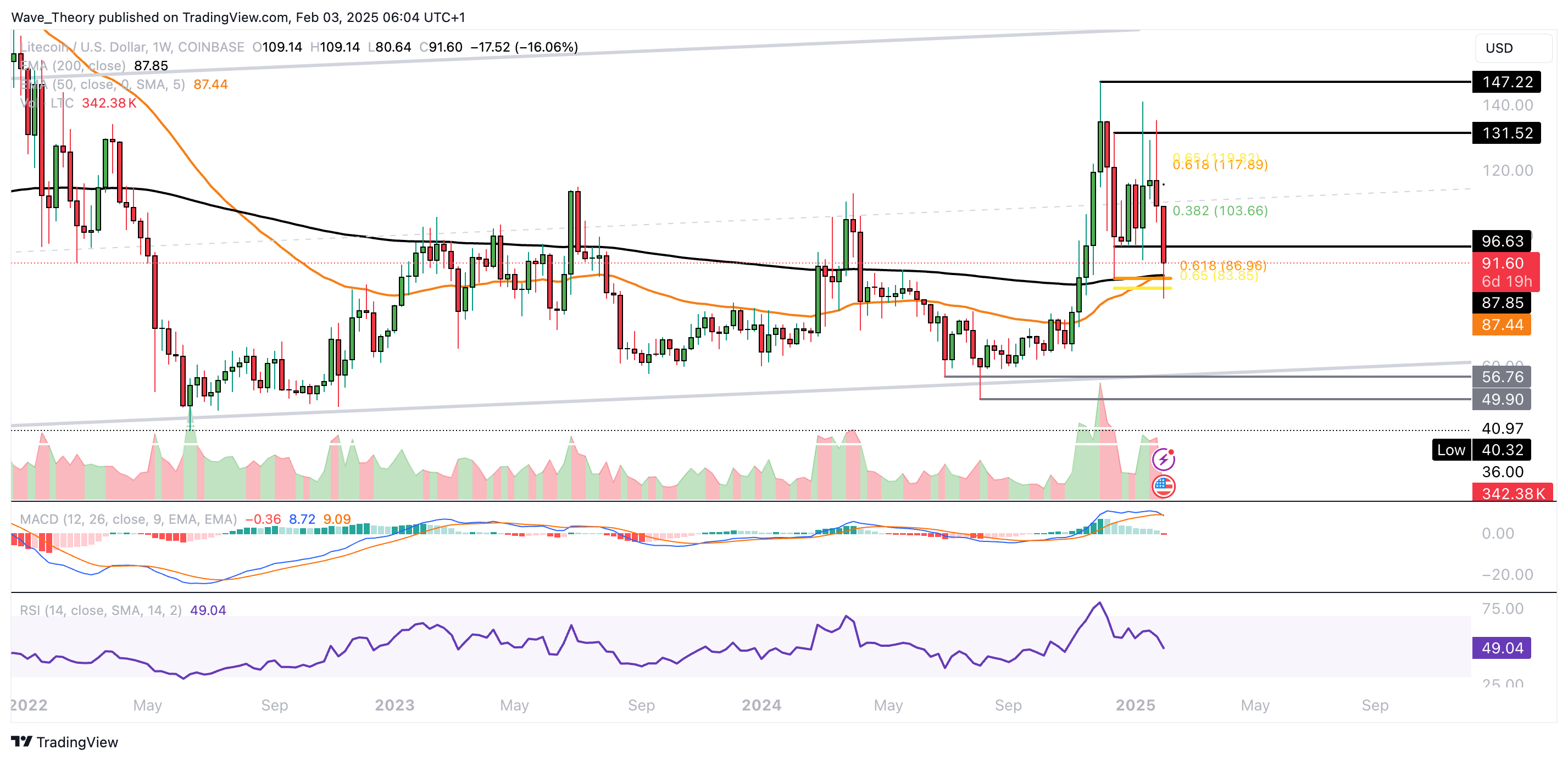 Damit befindet sich Litecoin jetzt an der Golden Ratio Unterstützung bei rund 86 USD, wobei der 200-Tage-EMA bei rund 93 USD als zusätzliche Unterstützung dient.