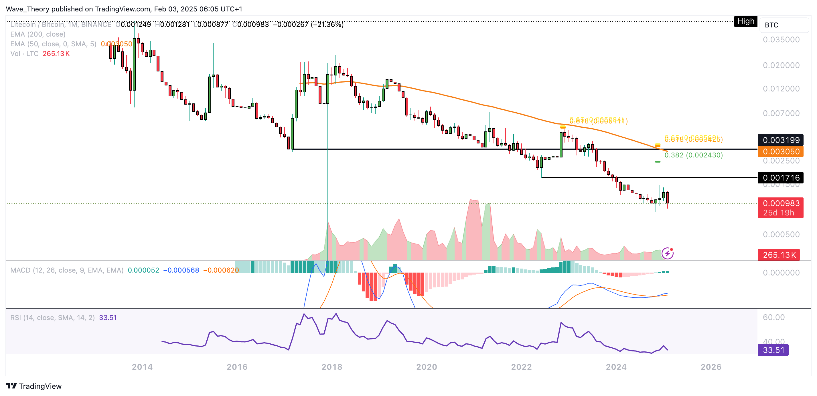 Das weist darauf hin, dass das bärische Momentum austrocknet. Sollte der Kurs eine Aufwärtsbewegung initiieren, wartet bereits bei rund 0,001716 BTC signifikanter Widerstand.