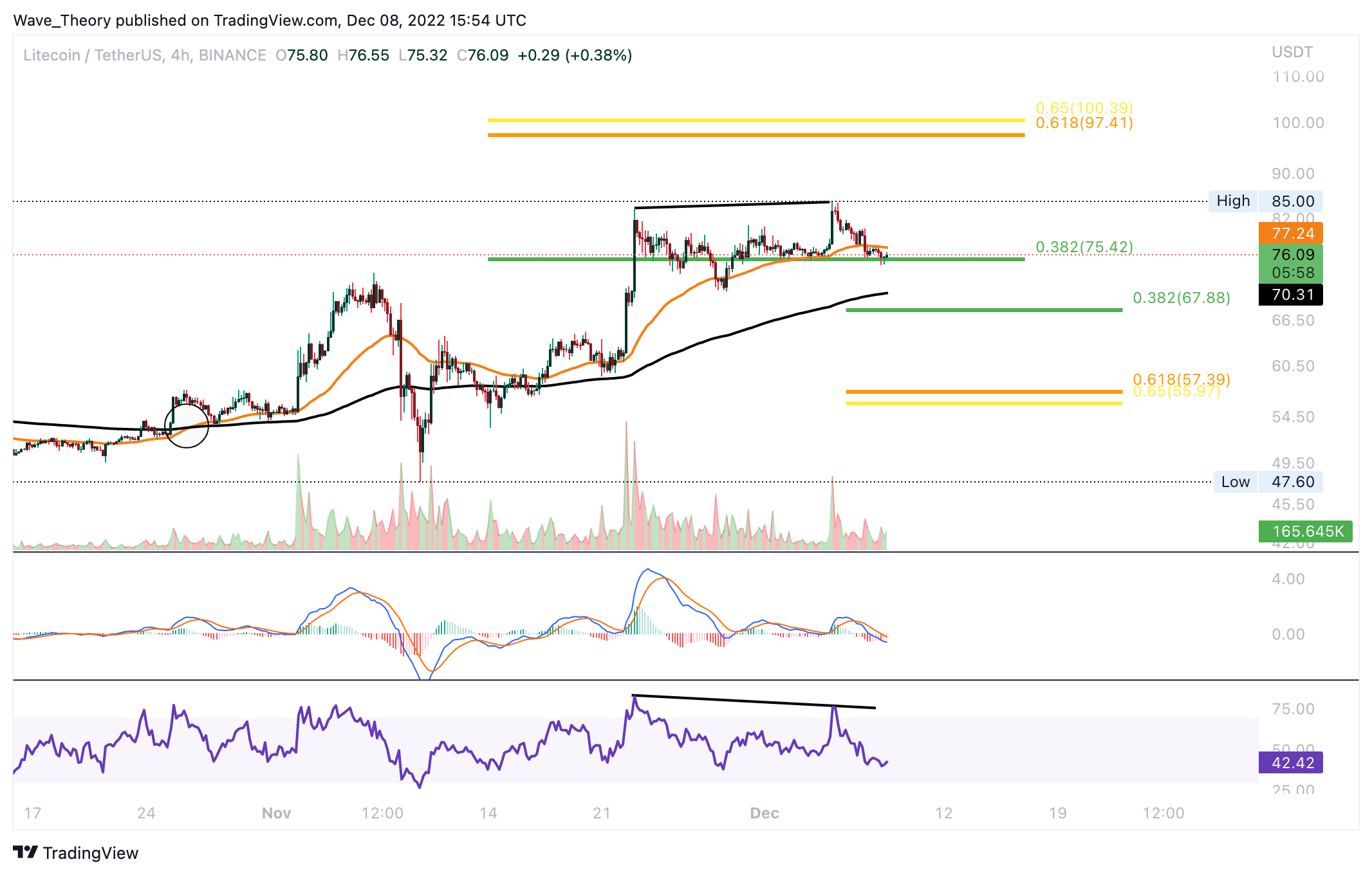 SponsoredSollte der LTC Kurs jetzt korrigieren, findet er spätestens bei rund 67 USD und 57 USD die nächsten signifikanten Fib Unterstützungen.”