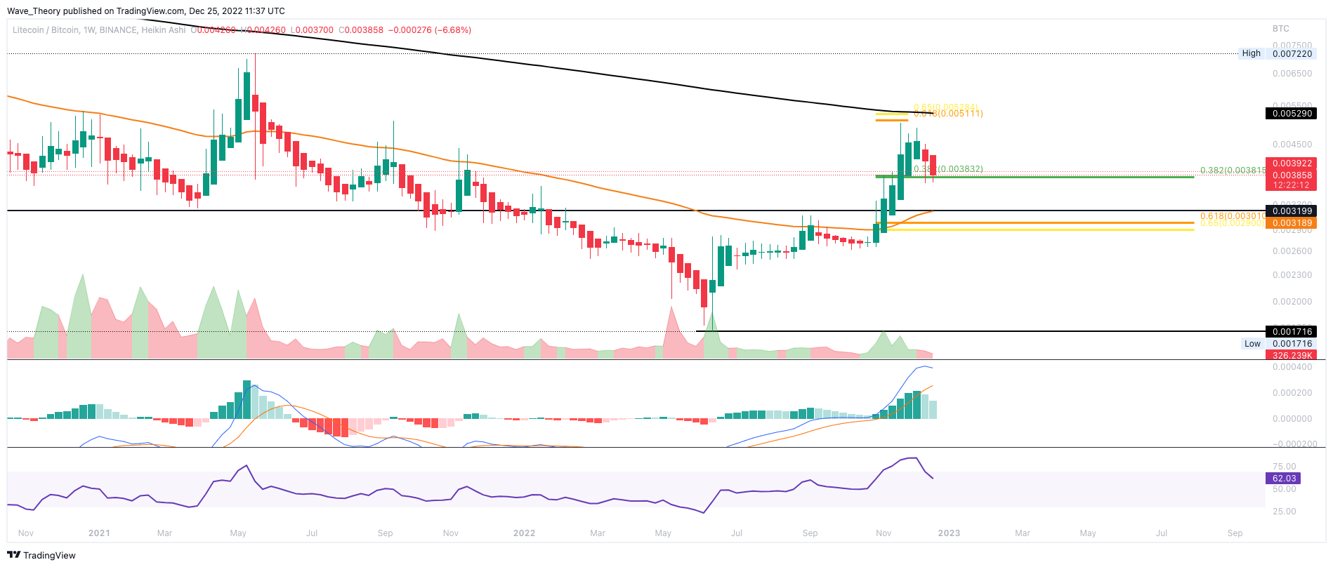 Gegen BTC befindet sich der Litecoin Kurs an signifikanter Fib Unterstützung