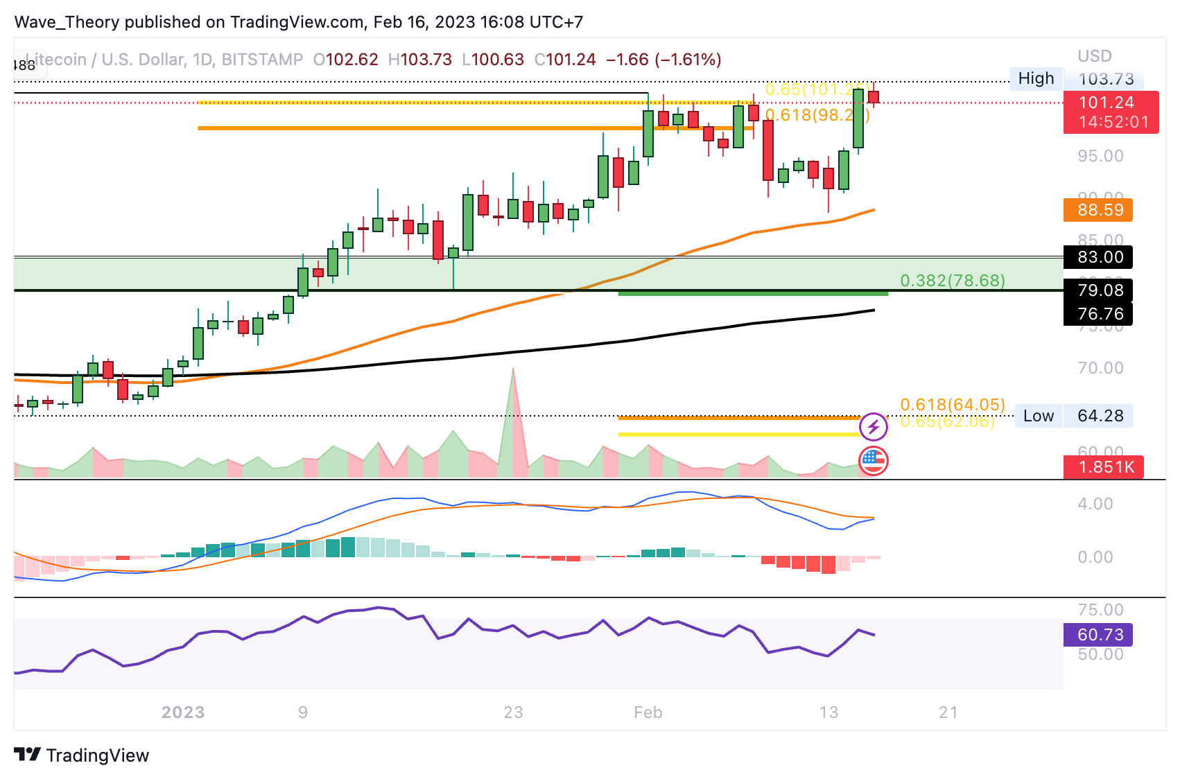 Der LTC Kurs wurde am Golden Ratio Widerstand bärisch abgewiesen