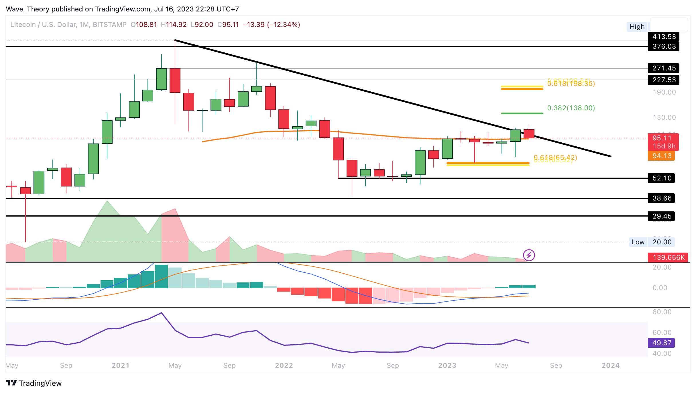 Kann sich der Litecoin Kurs über dem 50-Monate-EMA bei rund 94 USD halten?