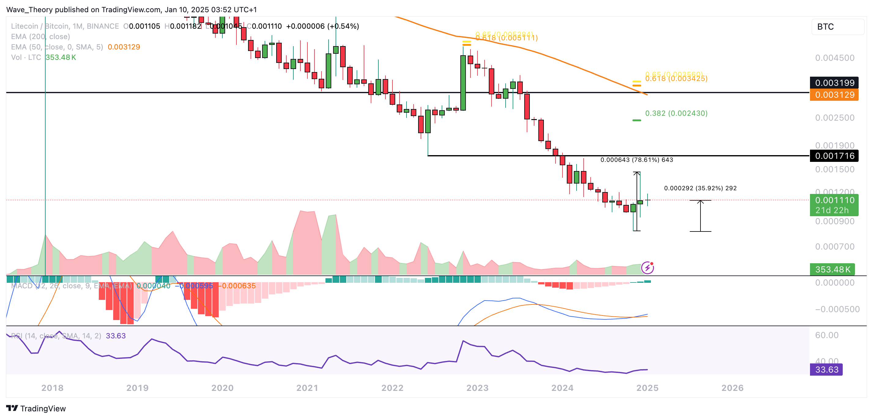 Währenddessen zeigt sich der RSI neutral. Dabei hält sich Litecoin bisher erfolgreich über dem 50-Monate-MA bei rund 87 USD.