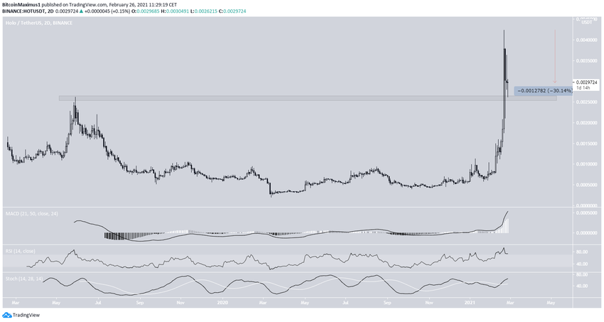 Trotz des parabolischen Kursanstiegs liefern uns die technischen Indikatoren keine Anhaltspunkte dafür, dass die aktuelle Rally wirklich an Fahrt verloren hat. Der HOT-Youtube-Livestream vom 24. Februar 2021 hat Kursentwicklung möglicherweise ebenfalls positiv beeinflusst.