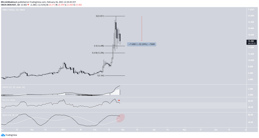 Der Altcoin OKB ist zurzeit auf Platz 66 der größten Kryptowährungen. Zum Zeitpunkt der Veröffentlichung kostet 1 OKB 15.80 USD. Auch der Preis von diesem Altcoin ist um ca. 30% gesunken, nachdem er zuvor am 22. Februar 2021 auf ein neues All-Time High (23.80 USD) angestiegen ist.