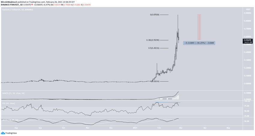 Zum Zeitpunkt der Veröffentlichung befindet sich der FTM Kurs in der Nähe des 0.382-Fib-Retracement-Levels. Das nächste wichtige Unterstützungslevel liegt bei ca. 0.45 USD (dem 0.5-Fib-Retracement-Level).
