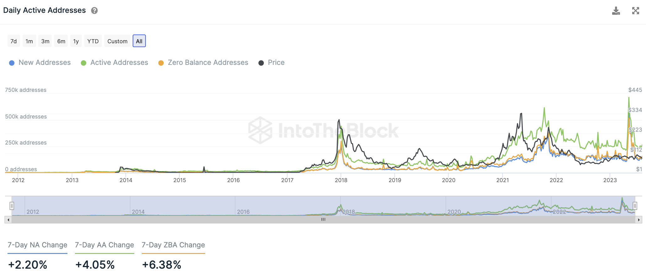 Die Anzahl an täglichen aktiven Adressen im Litecoin Netzwerk ist in den letzten sieben Tagen leicht gestiegen