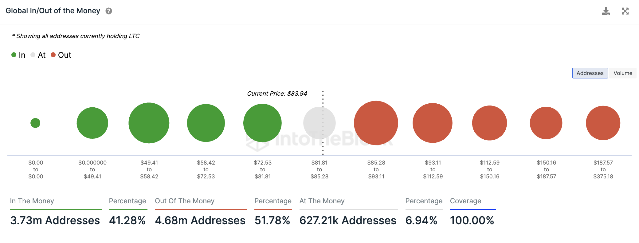 Mittlerweile sind mehr als die Hälfte der Litecoin Adressen im Minus. Wird sich dieser bärische Trend fortsetzen?