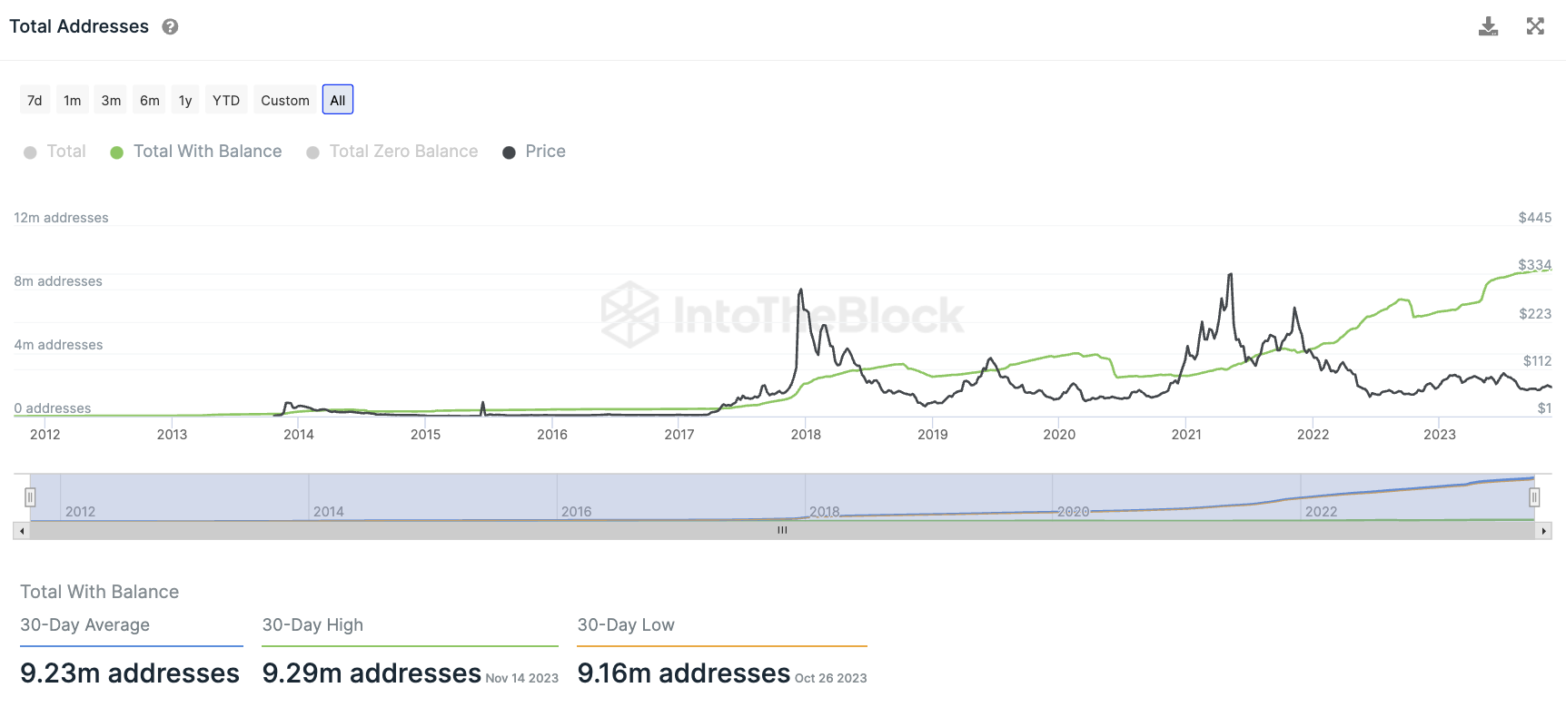 In den letzten 30 Tagen wurden durchschnittlich 9,23 Millionen Litecoin Adressen gezählt