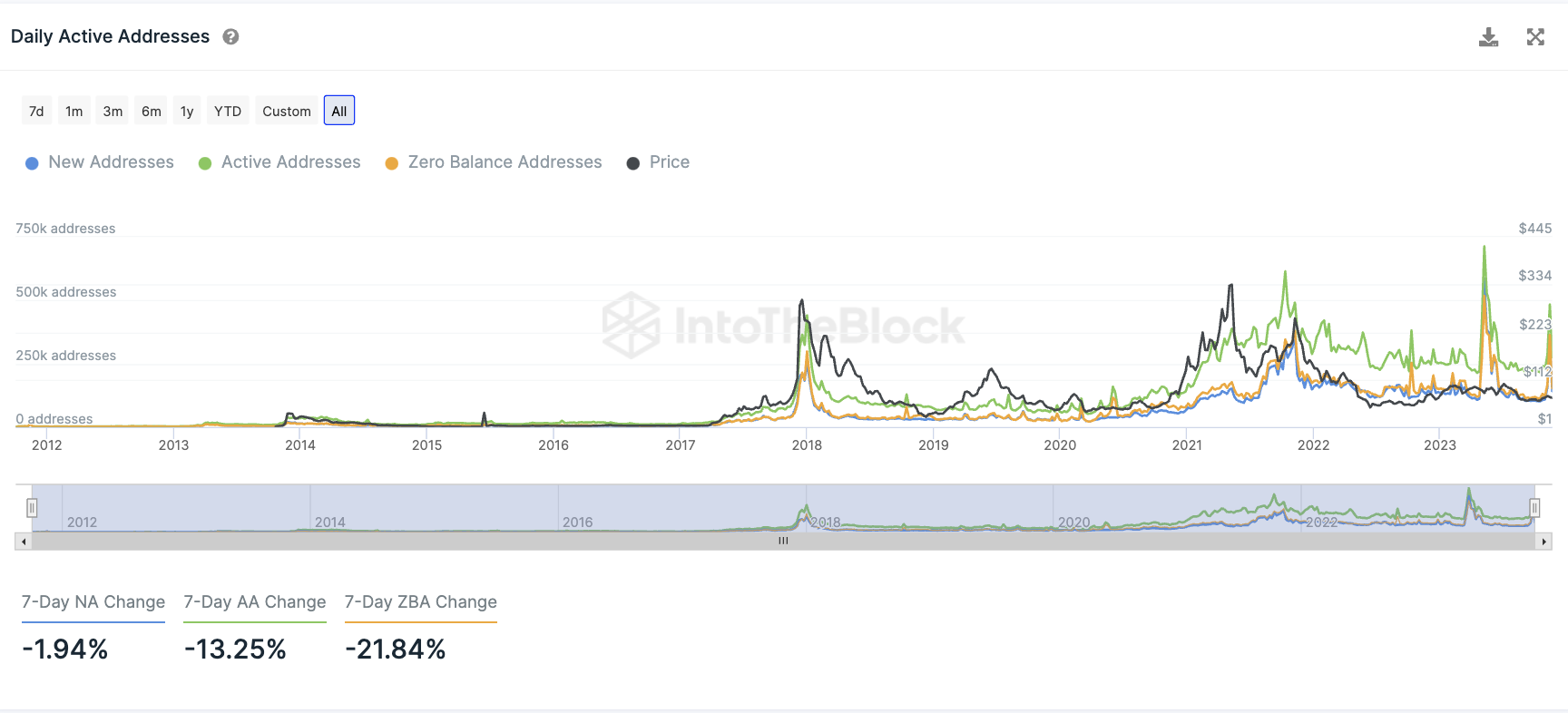 Die Zahl der täglich aktiven Adressen im Litecoin-Netzwerk hat in den letzten sieben Tagen einen starken Rückgang erlebt