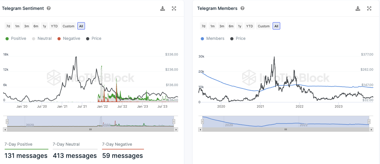 In der letzten Woche überwog in der Litecoin-Community auf Telegram eine positive Stimmung. Von den Kommentaren waren 131 positiv, während 59 negativ ausfielen. Trotz dieser überwiegend positiven Meinungen erlebt die Litecoin Telegram-Gruppe derzeit jedoch einen Rückgang der Mitgliederzahlen anstelle eines Wachstums.