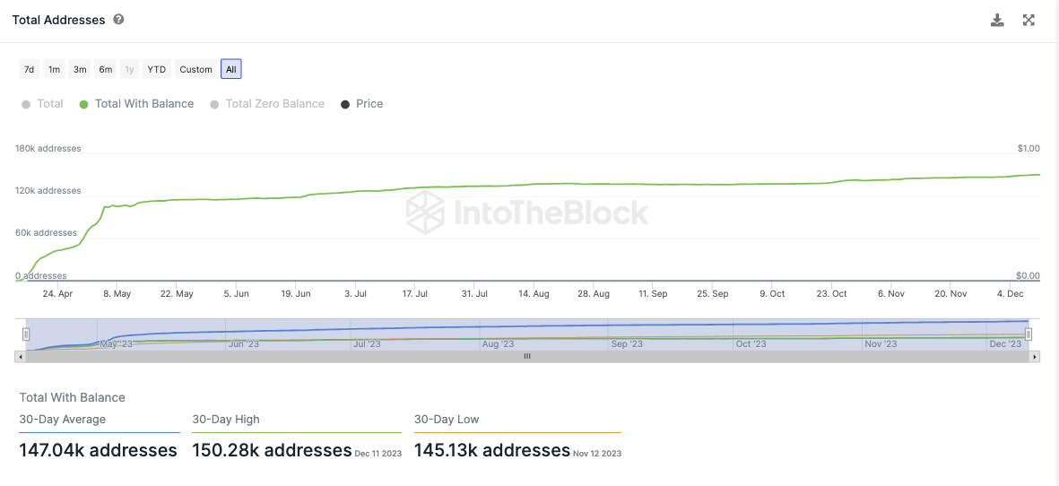 Nichtsdestoweniger wurden in den letzten 30 Tagen rund 147.000 Adressen gezählt, die ein PEPE Guthaben aufweisen.