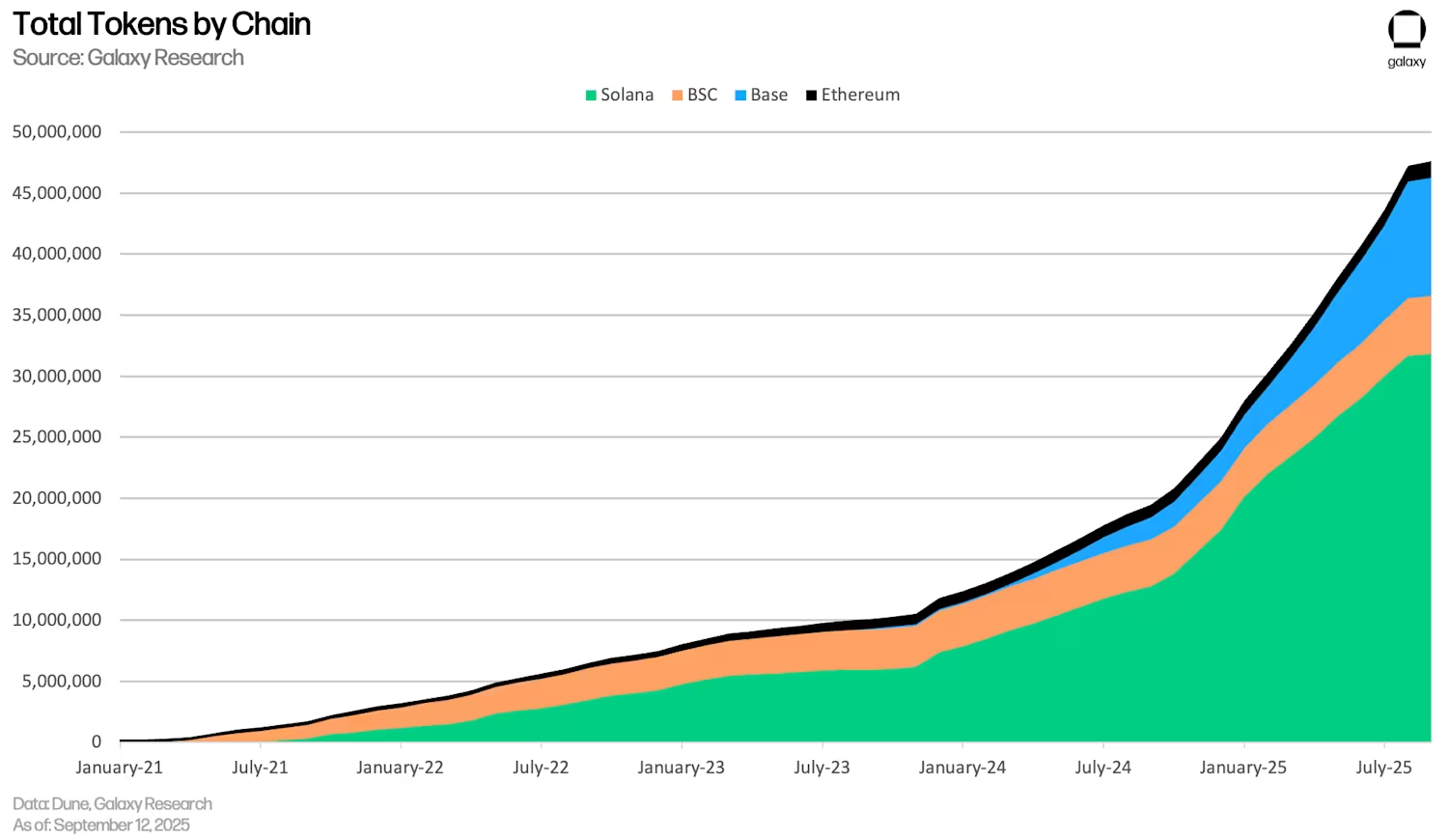 Nach Angaben von Galaxy Research werden derzeit mehr als 32 Millionen Memecoins auf Solana gehandelt, was 30 Prozent des dezentralen Börsenvolumens entspricht. Die meisten Trader verlieren ihr Geld innerhalb von Sekunden, während die Betreiber der Infrastruktur die meisten Gewinne einstreichen – was ein kasinoähnliches System widerspiegelt, das die Bereitsteller gegenüber den Teilnehmern belohnt.