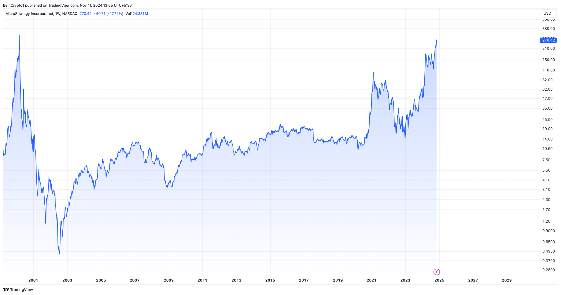 Diese strategische Ausrichtung unterstreicht die Rolle von MicroStrategy als Pionier bei der Positionierung von Bitcoin in Unternehmensfinanzstrategien. Solche Schritte haben die Aktie auf die höchsten Niveaus seit 24 Jahren getrieben.
