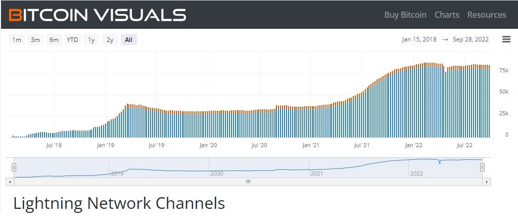 In diesem Jahr 2022 flachte sich das Wachstum des Lightning-Network (LN) ab. Gründe dafür sind eine allgemeine Schwächephase der Märkte und der lange Krypto-Winter.