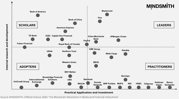 SponsoredDie Studie konzentrierte sich auf 234 Organisationen, darunter Großbanken, Zahlungssysteme und Versicherungsunternehmen (ausgewählt basierend auf dem Fortune 500- und Fortune Global 500-Ratings), sowie auf mehr als 1000 Blockchain-Projekte, Patente und Investitionsabkommen. Ein Jahr später beschloss MINDSMITH, die Ergebnisse der Studie erneut zu prüfen, die Genauigkeit der gemachten Prognosen zu bewerten und die Fortschritte einzelner Unternehmen im vergangenen Jahr genauer zu untersuchen.