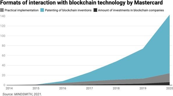 Wir können eine beispiellose Steigerung der Patentaktivität von Mastercard beobachten. Im vergangenen Jahr hat dieser Finanzriese mehr Anträge auf Blockchain-Erfindungen gestellt als in allen vorangegangenen Jahren zusammen. Ein weiterer wesentlicher Unterschied im Jahr 2020 war die Verdoppelung der Investitionen in Blockchain-Startups. So wurde das Corporate Accelerator-Programm Mastercard Start Path im vergangenen Jahr von einer Reihe von Wettbewerben als bestes Innovationsprogramm ausgezeichnet. Nach fünf Jahren Forschung und Entwicklung hat Mastercard im Jahr 2020 schließlich die strategischen Richtungen für die Entwicklung im Bereich Blockchain festgelegt und begonnen, aktiv in innovative Blockchain-Projekte zu investieren.