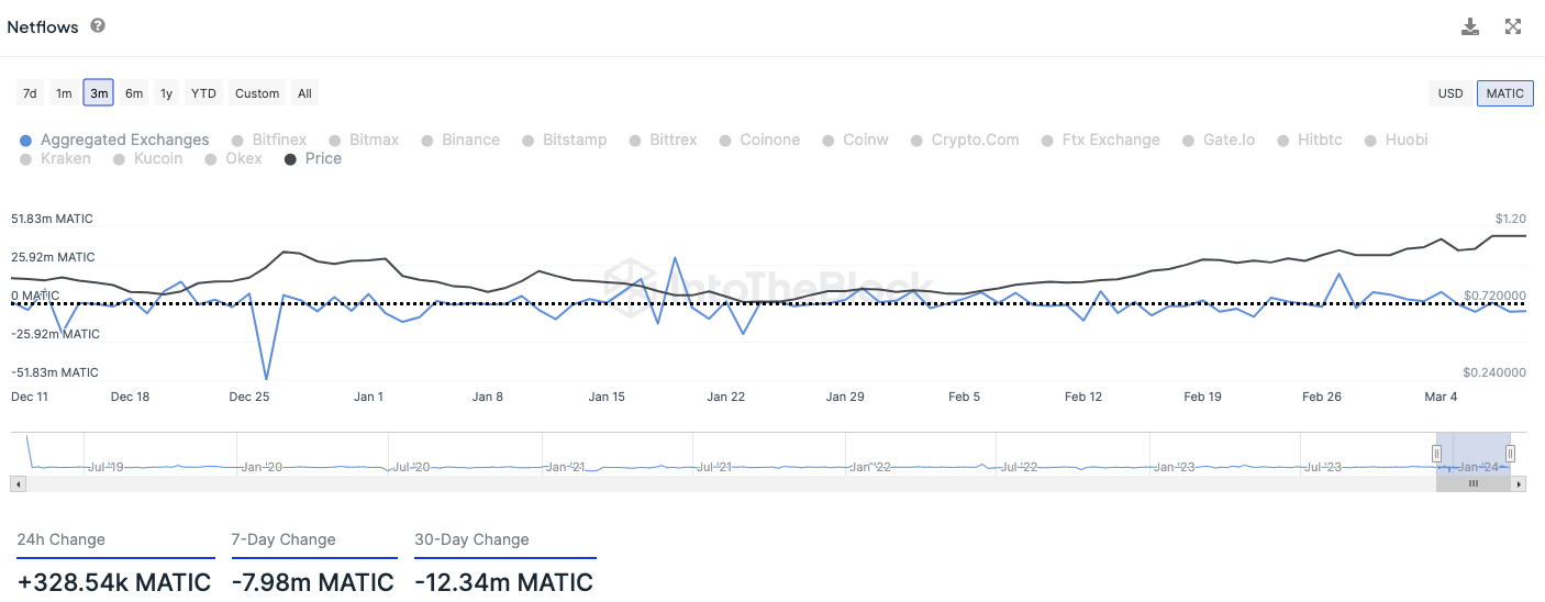 In den letzten 30 Tagen betrug der Überschuss an Abhebungen sogar über 12,3 Millionen MATIC Token.