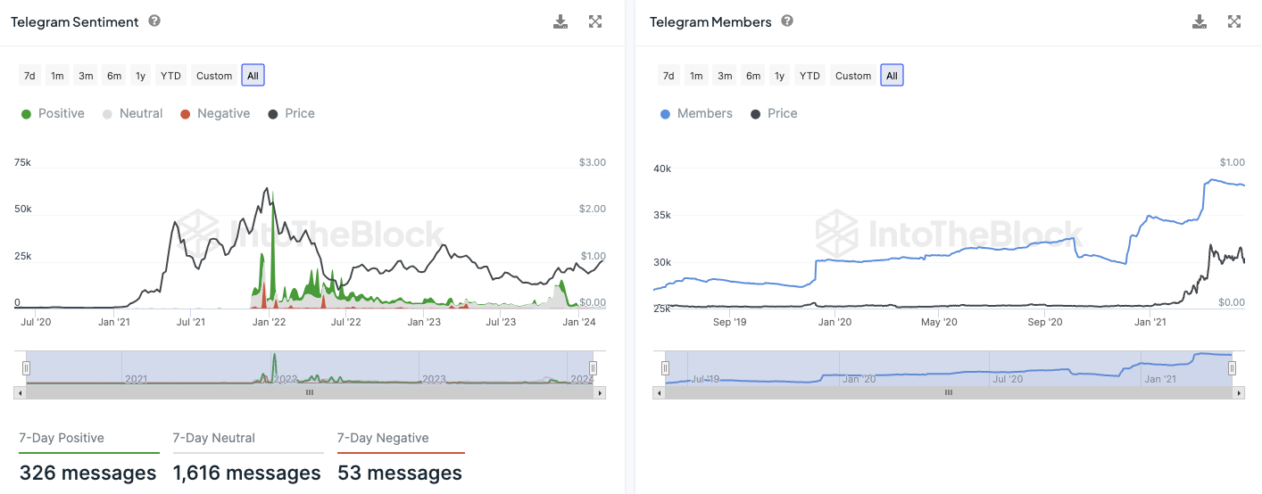 Auf Telegram lagen in den letzten sieben Tagen 326 positive Nachrichten vor. Dem gegenüber standen lediglich 53 negative Nachrichten.