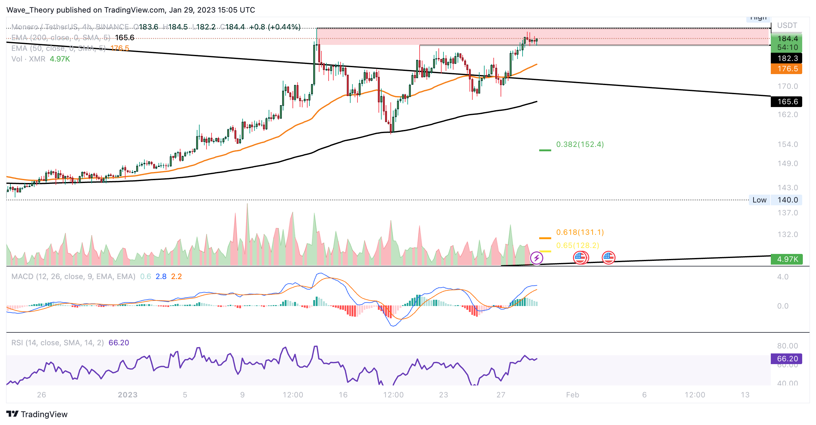 Im Idealfall kehrt Monero kurzzeitig zur Trendlinie zurück, welche nun als Unterstützung fungiert, um daran abzuprallen. Dann könnte XMR zur Golden Ratio bei rund 220 USD steigen.