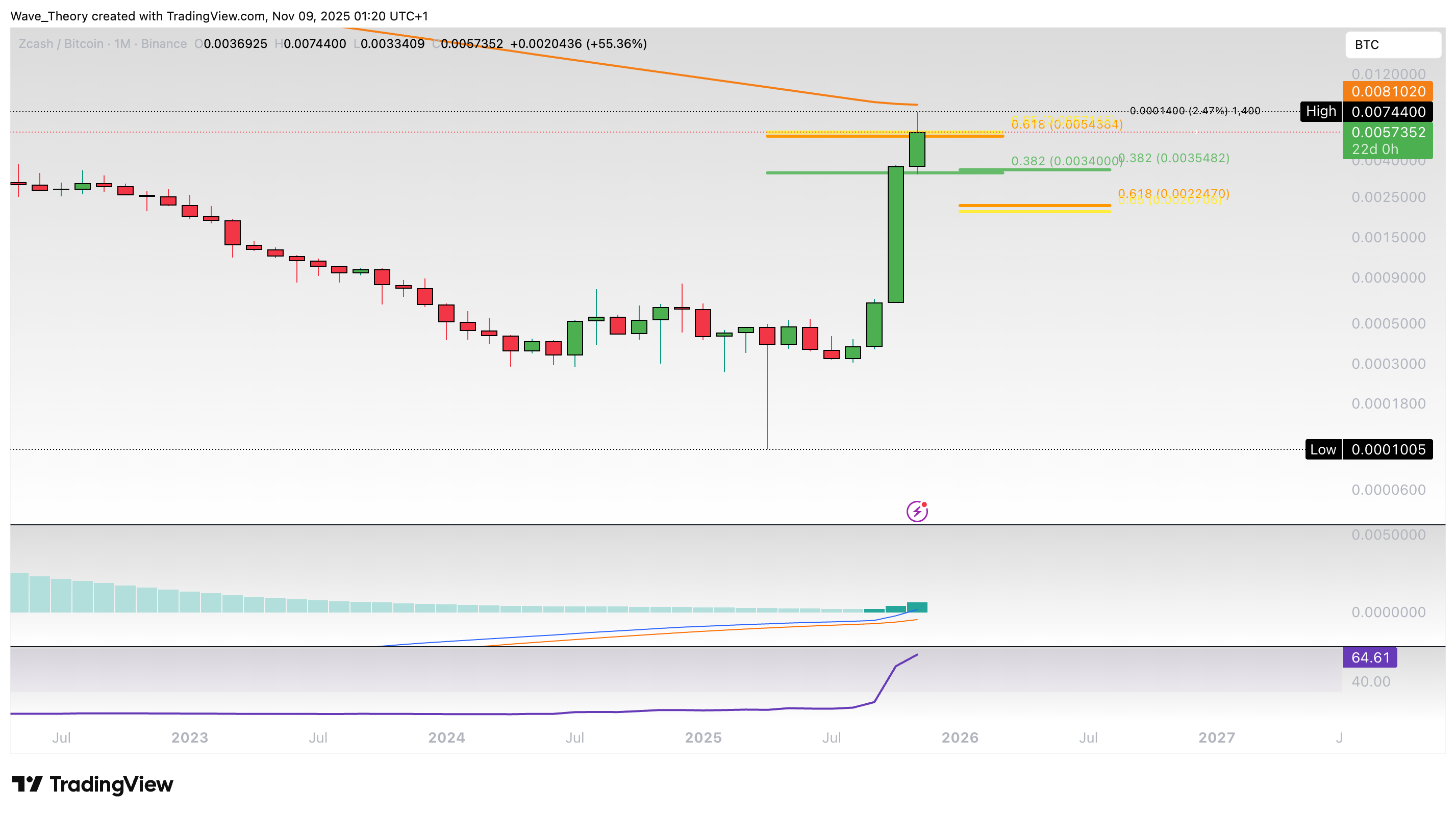 Nichtsdestoweniger stößt Zcash jetzt zwischen der Golden Ratio bei rund 0,0055 BTC und dem 50-Monate-EMA bei rund 0,0081 BTC auf signifikanten Widerstand.