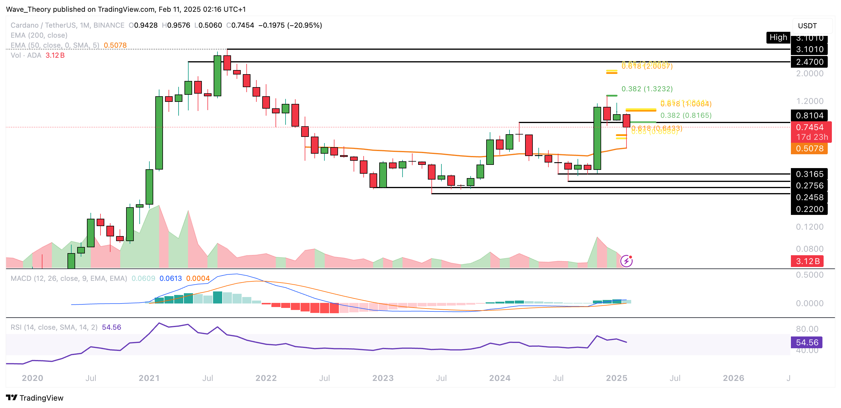 Der Cardano Kurs konnte am 50-Monate-EMA stark abprallen. Geht es jetzt weiter bergauf für den ADA Kurs, oder folgt eine Abwärtsbewegung?