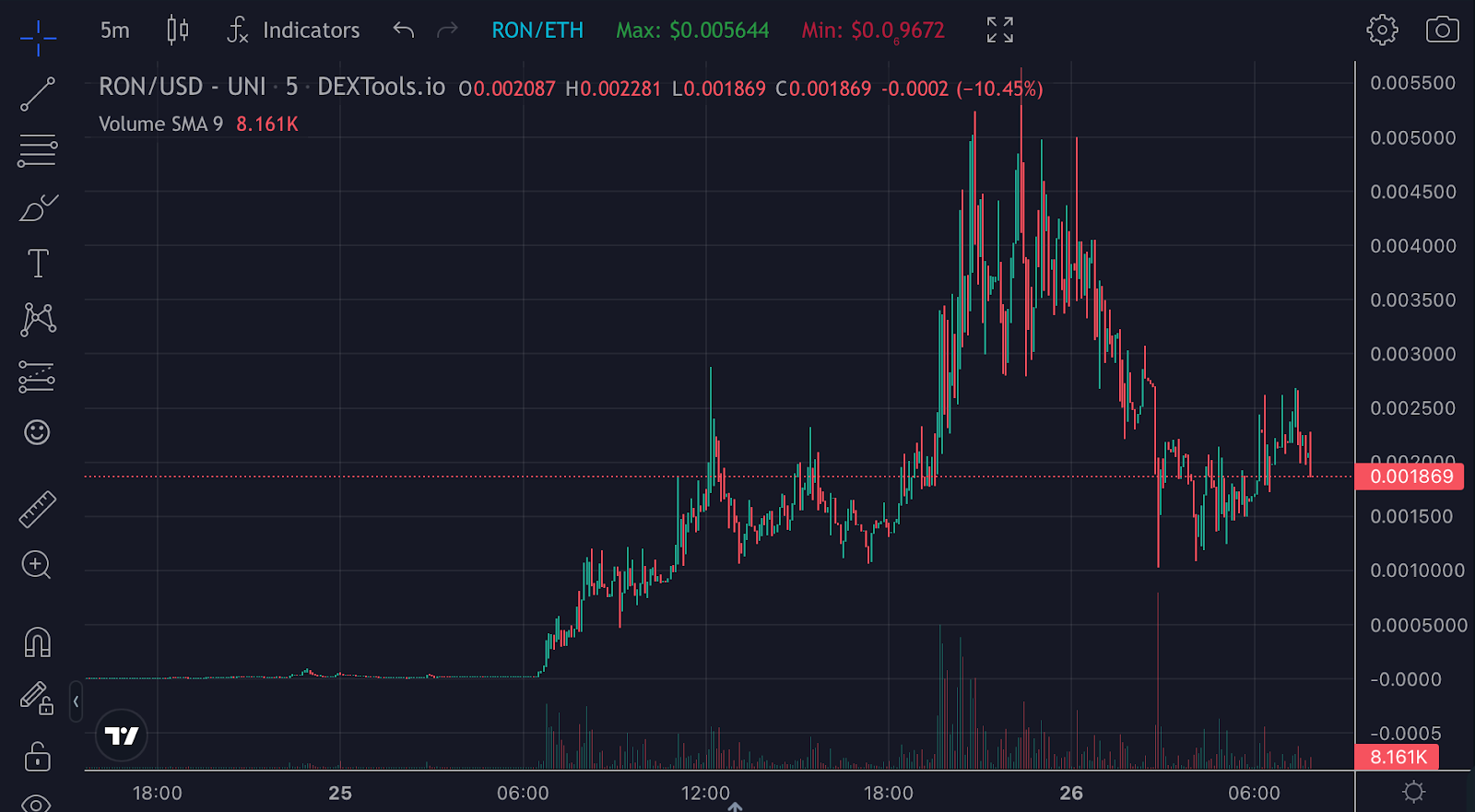 Seitdem kommen Tag für Tag unzählige der Spaß-Kryptowährungen auf den Markt, von denen die Meisten genauso schnell wieder verschwinden, wie sie gekommen sind. Allerdings kommt es auch immer wieder zu Ausnahmen, wie $RON in den letzten 2 Tagen wieder gezeigt hat.