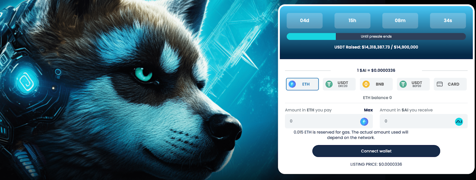 SponsoredDer Presale dürfte bald enden, da die 14 Millionen Dollar Marke bereits überschritten wurde. Für kurze Zeit haben potenzielle Käufer also noch die Möglichkeit, den $AI im Vorverkauf zum Fixpreis zu kaufen. Anschließen, wenn der Token an den Kryptobörsen gelistet wird, wird der Preis durch Angebot und Nachfrage bestimmt und kann innerhalb kürzester Zeit sprunghaft ansteigen.